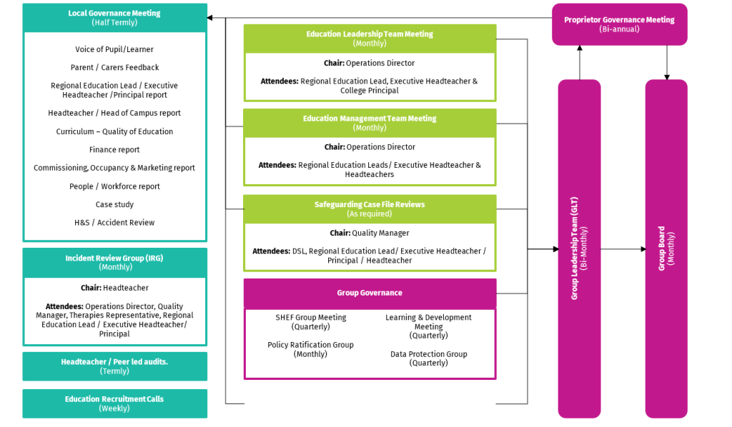 In addition, the Group continues its robust governance oversight through Termly School Governance meetings which are led by the Operations Director for Education and members of the wider Education Operations & Quality Teams. This process ensures that there is effective and meaningful operational governance and oversight of service delivery.